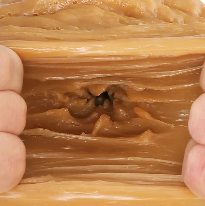 The entry of the Bread de Ecstasy might look tight at first glance, but it’s actually very stretchable and easy to slip into. Even those with a wider girth should have no problem finding a good fit. With a tunnel length of around 20 cm (~7.9 in), it’s also long enough to provide a satisfying and enjoyable experience, even for larger users.