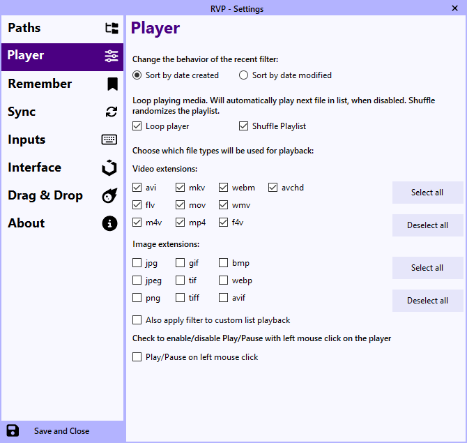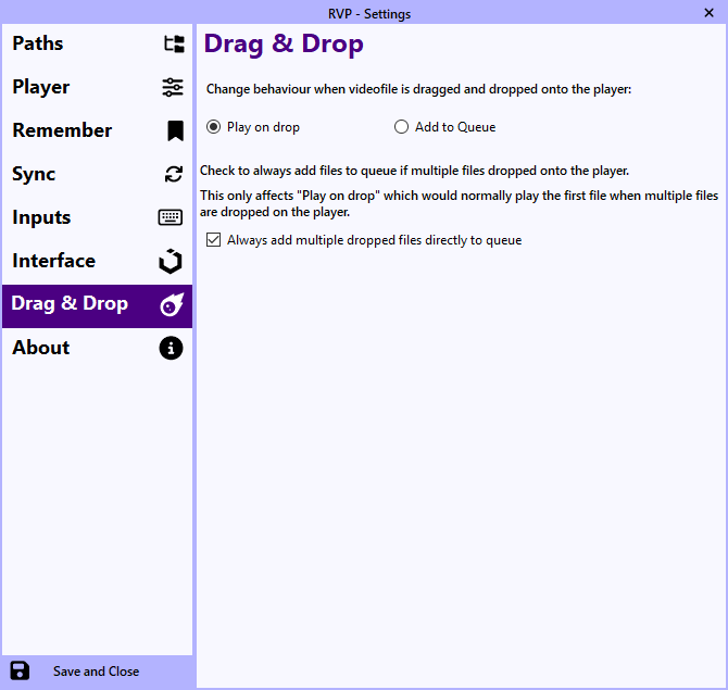 Note: RVP will start playing the file you opened it with and queue any additional videos it finds in itās directory automatically