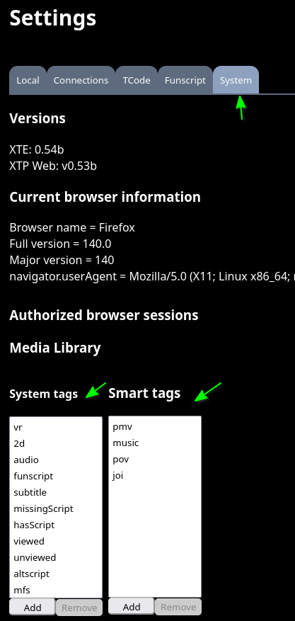 Tags can be customized. Its on the system tab in Desktop and WebUI. The tag UI does not work in heresphere.