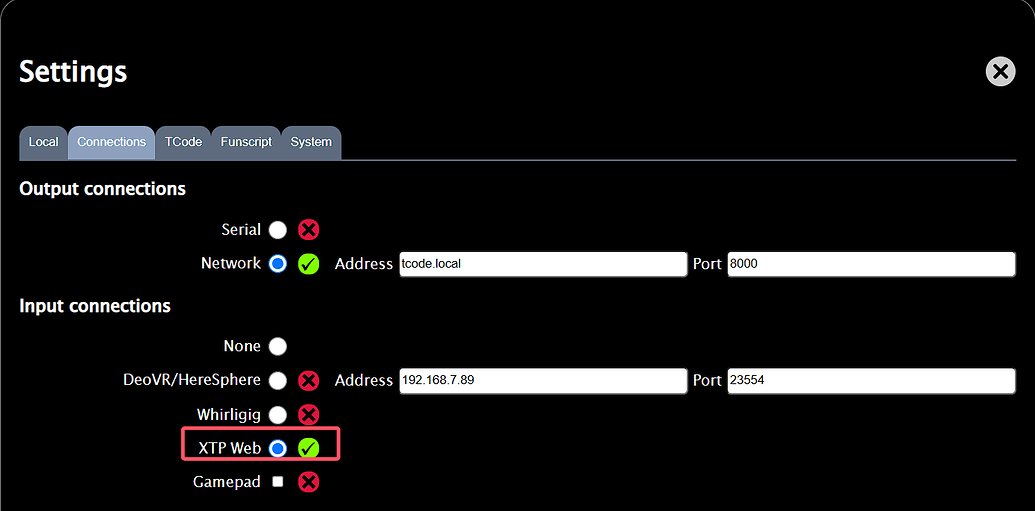 Hey, i have a problem, my OSR2+ is connected to XT and plays the scripts if i’m starting a video with a script. But theres no way to coonect it to DeoVR for some reason, when i use XT Web on the PC Browser it works and play the scripts, but when i try to open it in DeoVR i can’t even see the Ui from XT Web (same issue with XBVR since i deleted and fres installed DeoVR). in the Pico Browser it works, BUT only the Ui and video playback not the scripts, on PC it works fine.